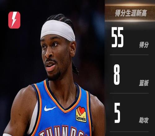 SGA砍55+8+5,拿下NBA赛季首个50+,刷新生涯得分新高