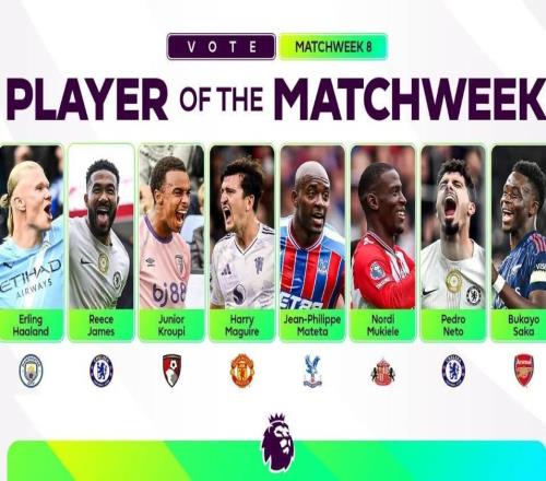 英超第8轮最佳球员候选:马奎尔、哈兰德、萨卡、内托在列