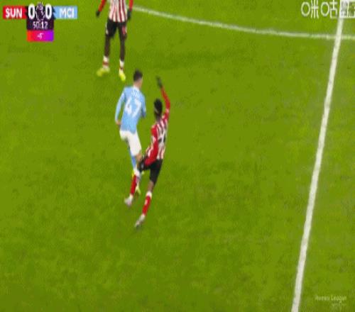 第45+4分钟,阿丁格拉背后放倒福登,被裁判黄牌警告