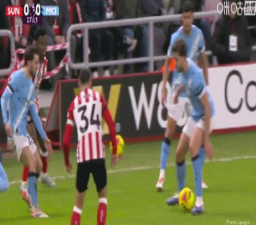 第34分钟,福登横传失误,马延达打门踢偏