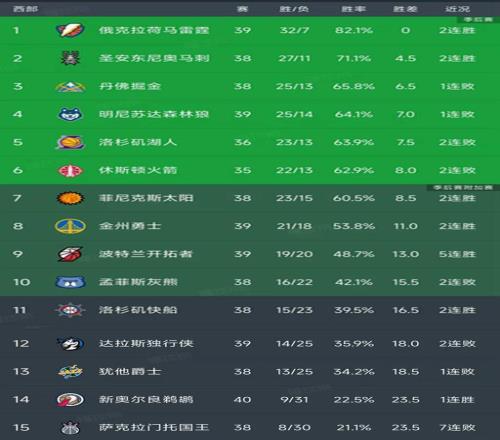 北京时间1月11日,今日的NBA常规赛只有6场比赛,所有比赛结束,我们看看西部的最新排名,主要的信息如下:马刺100-95险胜凯尔特人,森林狼134-146不敌骑士,快船98-92战胜活塞,独行侠107-125惨败公牛,爵士95-150惨败黄蜂!