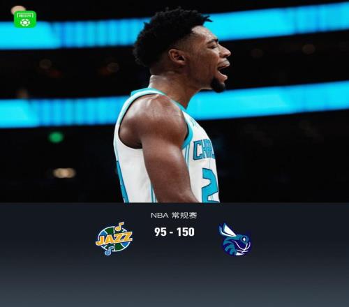 北京时间1月11日NBA 常规赛,犹他爵士对阵夏洛特黄蜂。比赛第一节黄蜂狂轰9记三分直接把爵士打蒙,首节就领先31分,半场爵士38-77黄蜂,下半场黄蜂继续三分雨,分差越拉越大,最终爵士95-150黄蜂。