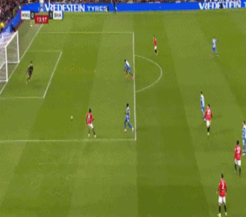 第12分钟,布莱顿乱战破门,维尔贝克左肋下底传中制造威胁,利桑德罗·马丁内斯门线救险挡出乔治尼诺·吕特的头球,可惜布拉詹·格鲁达补射入网,曼联0-1落后。